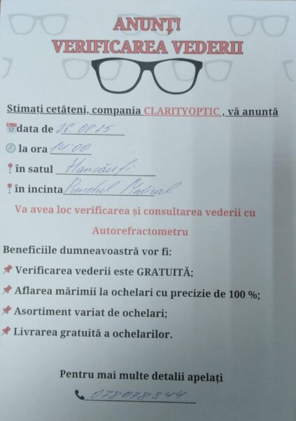 VERIFICAREA VEDERII PE DATA DE 26 AUGUST 2025, ORA 14-00 ÎN INCINTA OFICIULUI MEDICILOR DE FAMILIE HANCĂUȚI